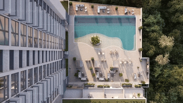 Cuenta con amenidades como piscinas, parques infantiles, canchas deportivas y un surf club.